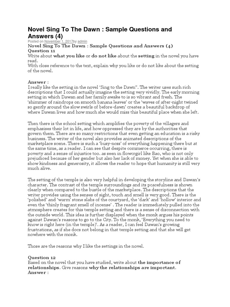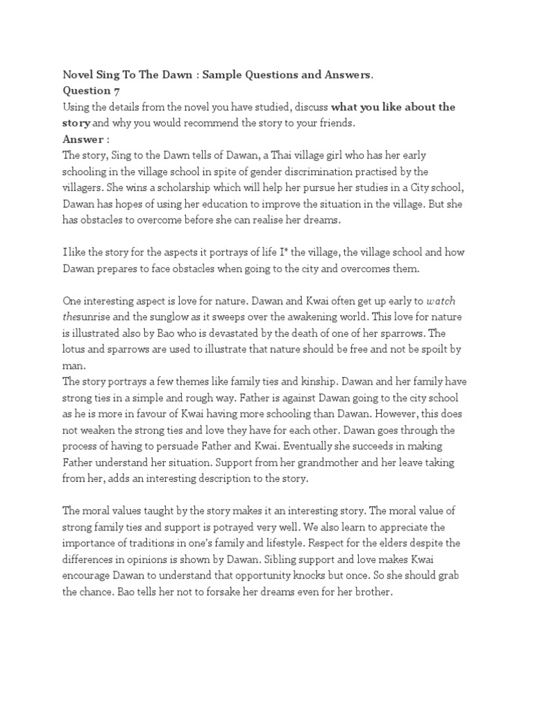 Novel Sing To The Dawn Sample Questions And Answers 4