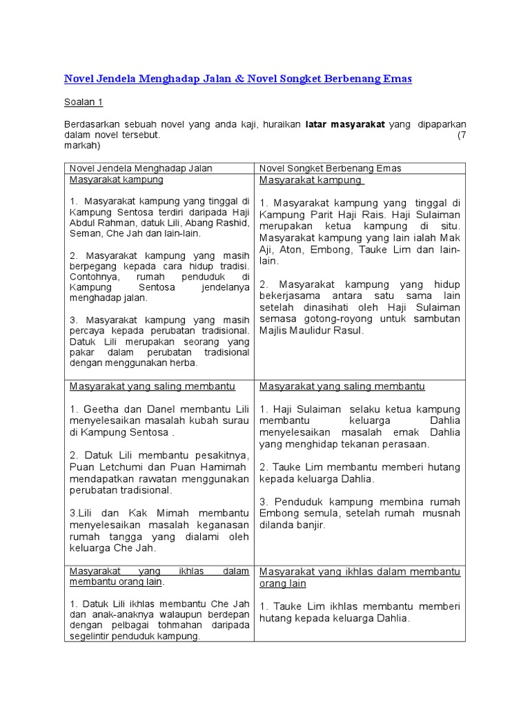Novel Jendela Menghadap Jalan Komsas Tingkatan 4 Bmblogr