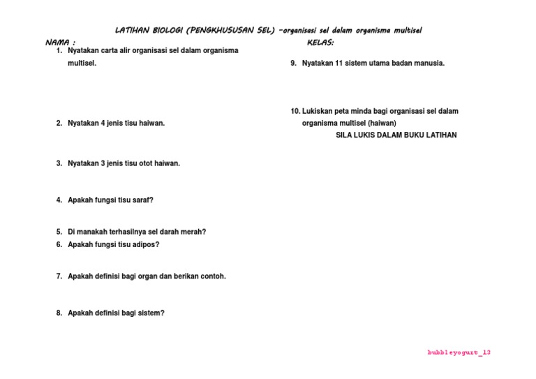 2 3 4b Organisasi Sel Dalam Organisma Multisel Soalan Subjektif Sains Pt3
