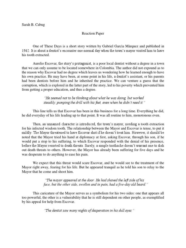 Short Story Analysis One Of These Days By Gabriel Garcia Marquez The Sitting Bee