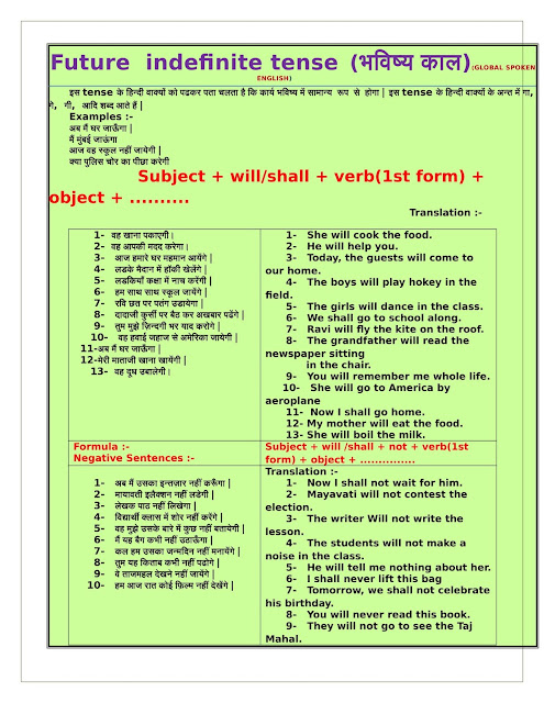 Future Indefinite Tense In Hindi