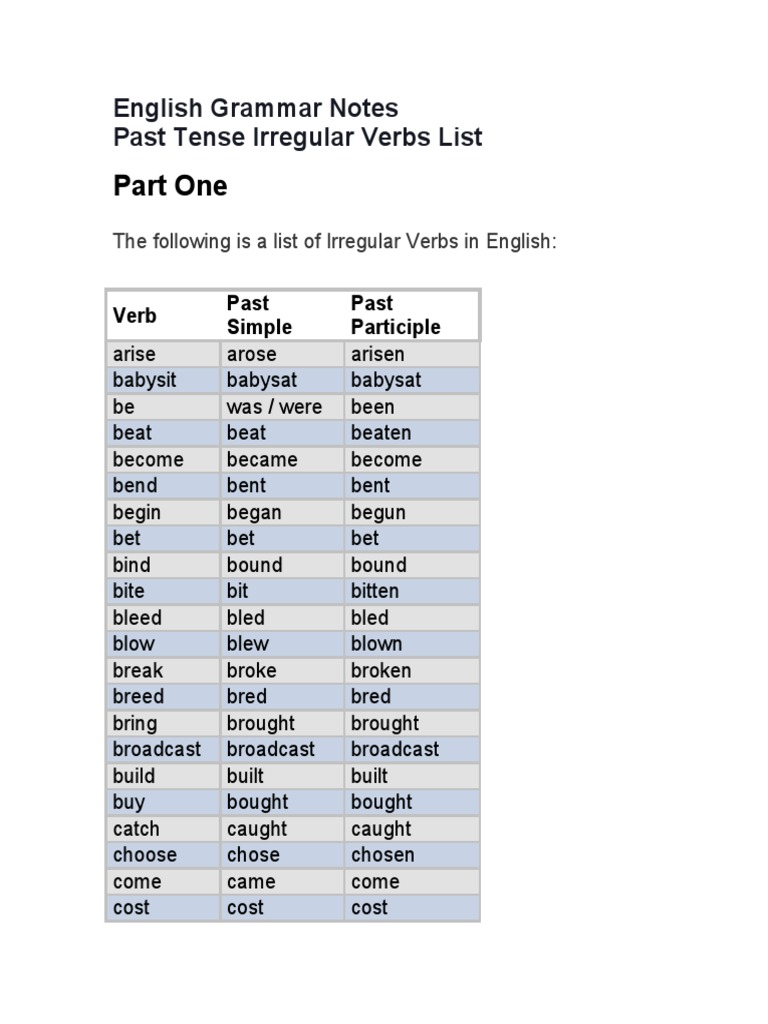 Irregular Verbs List In English English Grammar Here