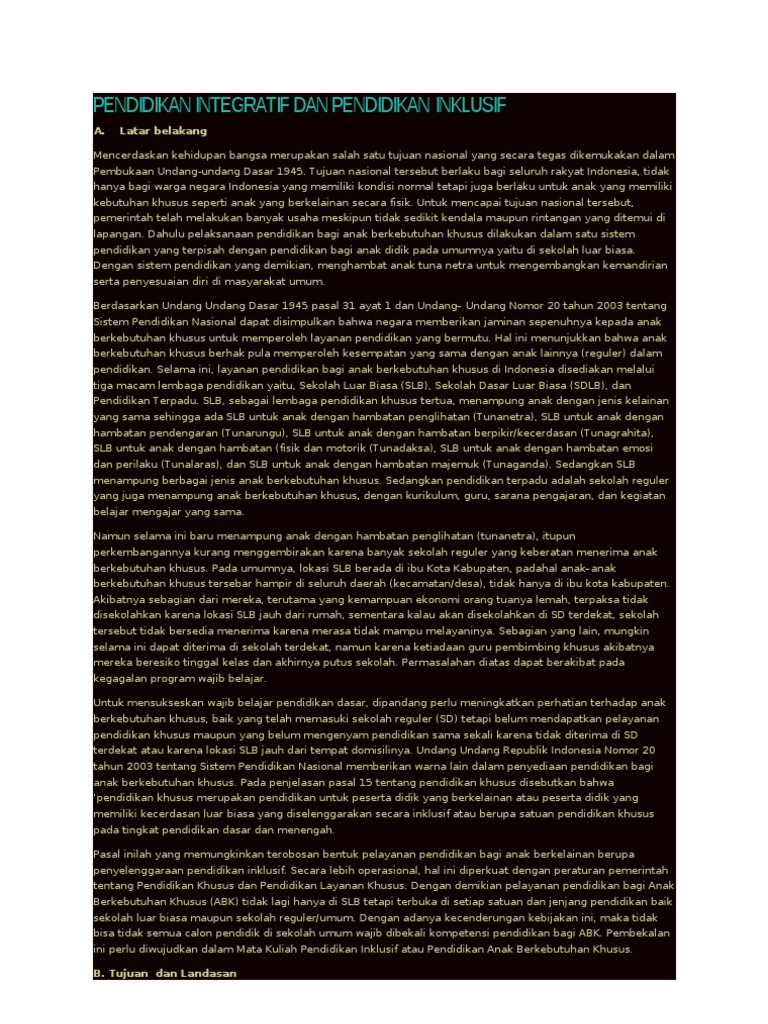 Pendidikan Integratif Dan Pendidikan Inklusif A Latar Belakang