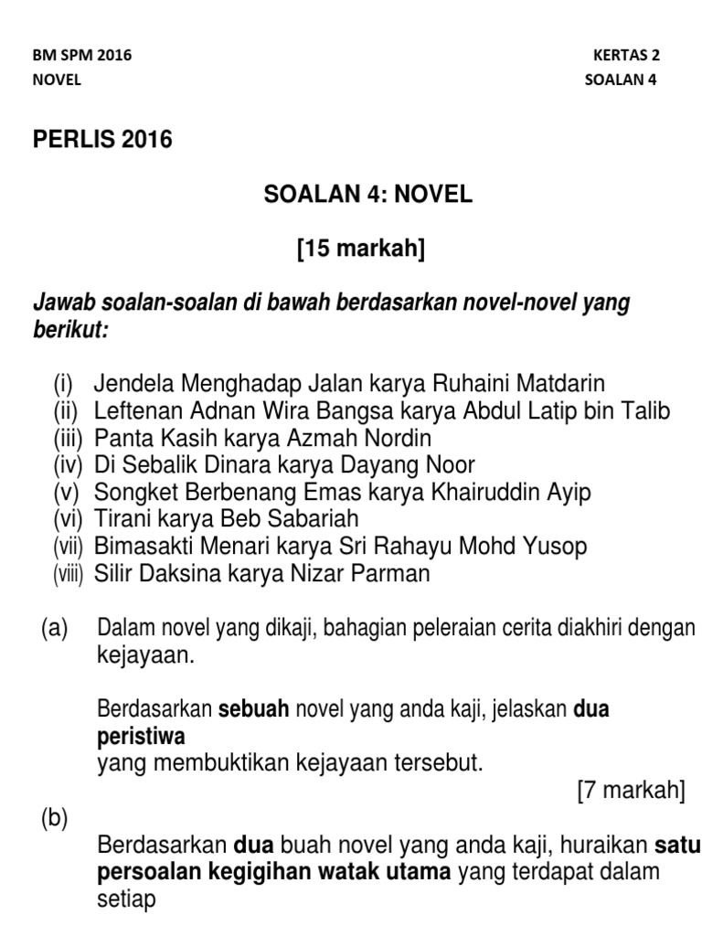 Himpunan Soalan Novel Percubaan Spm 2017