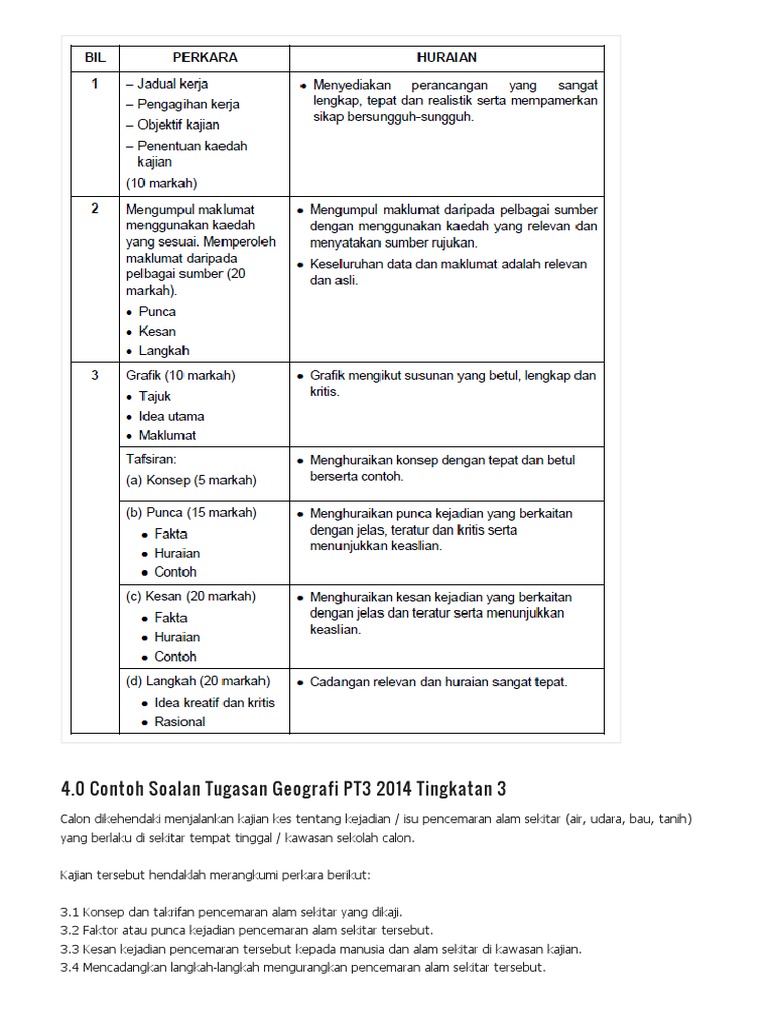 Contoh Soalan Tajuk Kerja Lapangan Tugasan Geografi Pt3 Tingkatan 3 Bumi Gemilang