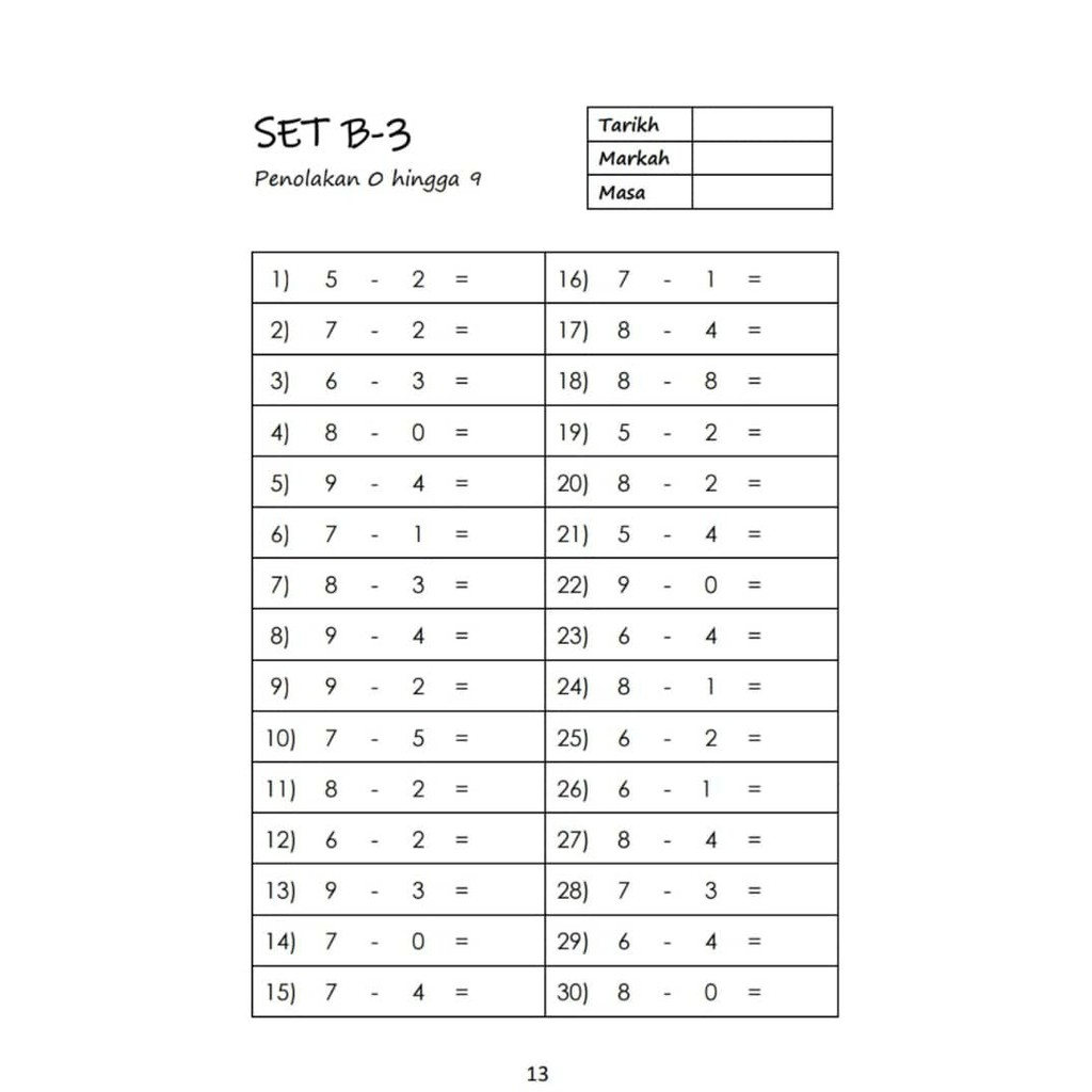 Latihan Matematik Operasi Tolak Prasekolah Kitpramenulis