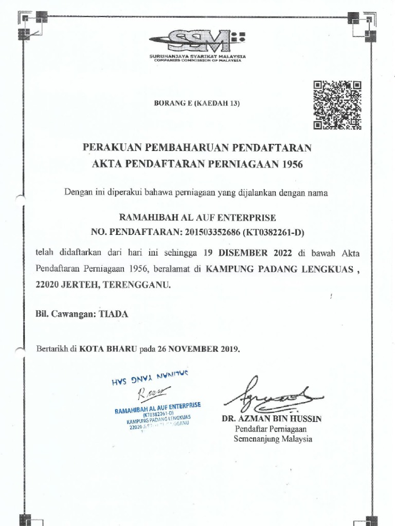 Perakuan Pembaharuan Pendaftaran Akta Pendaftaran Perniagaan 1956