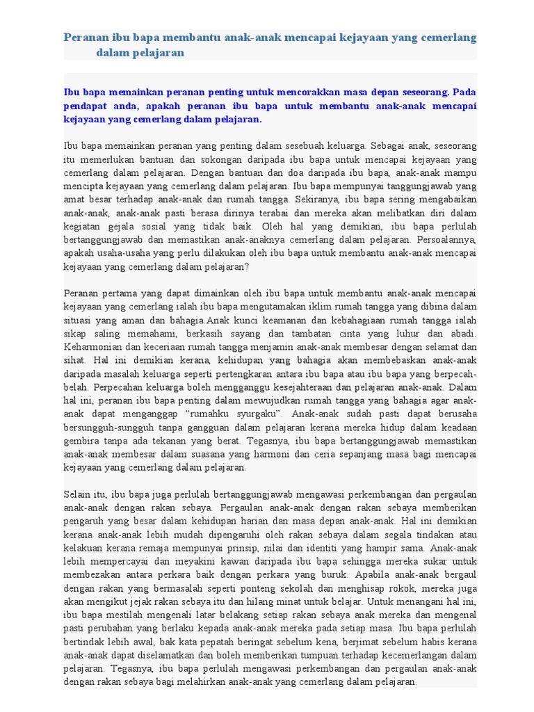 Peranan Ibu Bapa Dalam Membentuk Modal Insan Karangan Spm