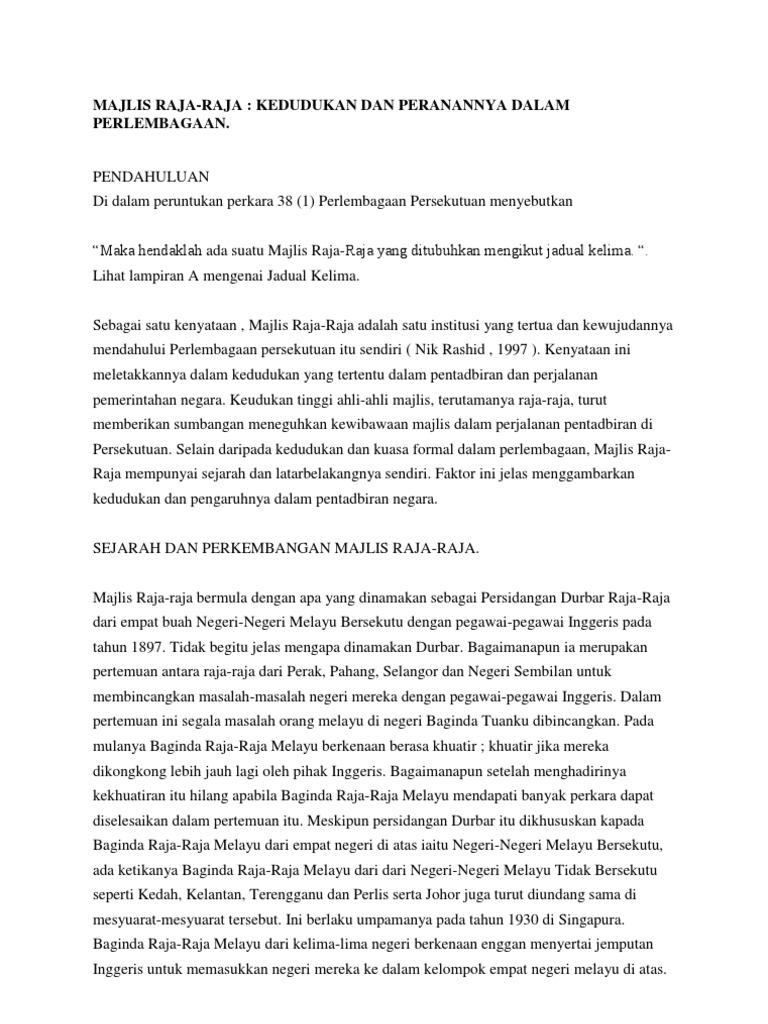 Pdf Sejarah Perkembangan Majlis Raja Raja Melayu
