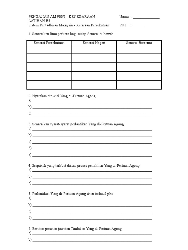 Pengajian Am 900 Latihan B5 Yang Di Pertuan Agong