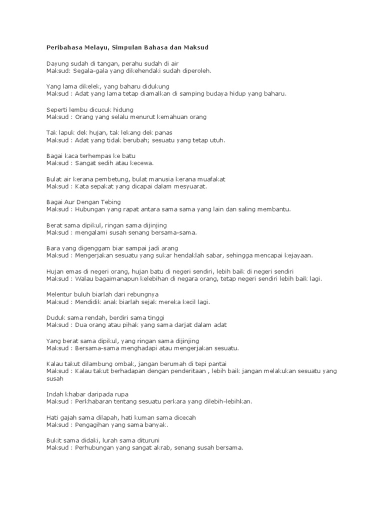 Peribahasa Melayu Simpulan Bahasa Dan Maksud