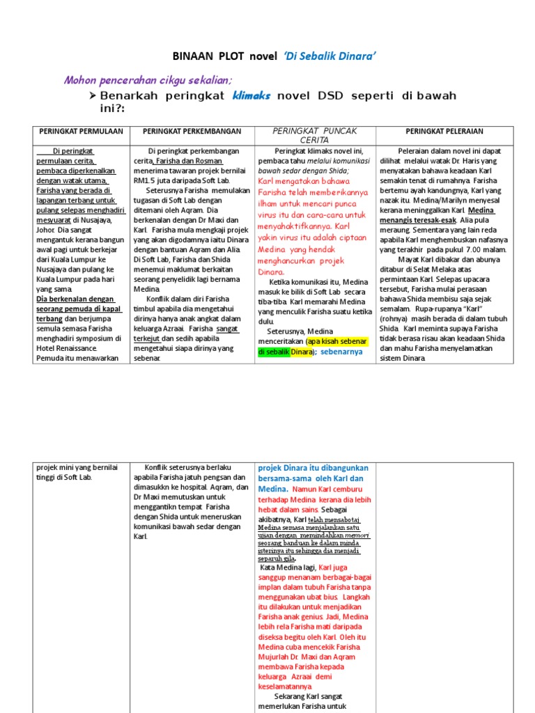 Bahasa Melayu Smk Taman Megah Ria Novel Di Sebalik Dinara Tingkatan 4