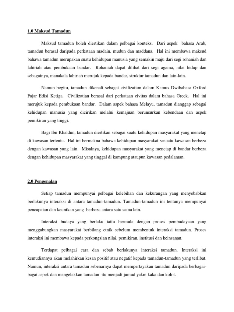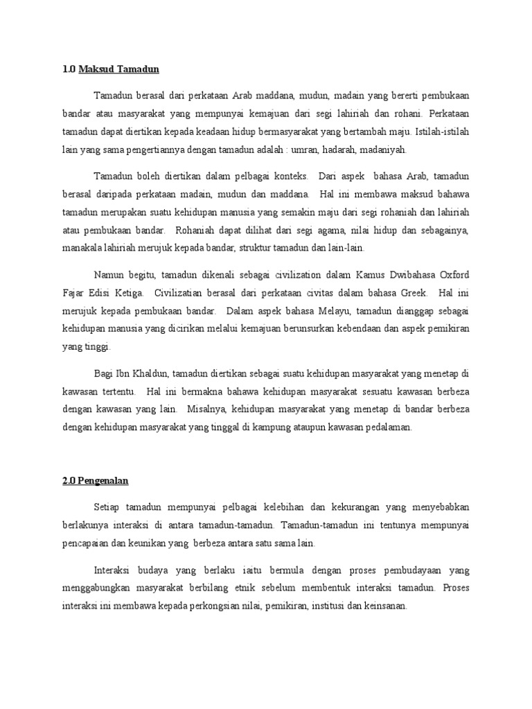 Hsi 310 Docx 1 0 Pengenalan Istilah Tamadun Merujuk Kepada Banyak Maksud Jika Mengikut Pandangan Sarjana Barat Istilah Tamadun Hanya Merujuk Kepada Course Hero