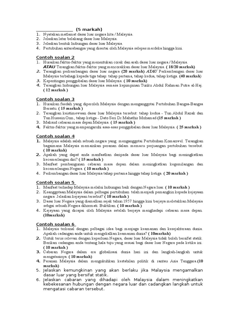 Trial Selangor Sejarah آ Dasar Luar Malaysia Tahap Kedua Tahap Ketiga 4 Markahl A Jelaskan Dasar Pdf Document