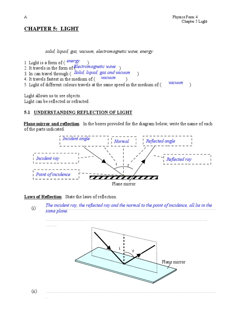 Spm Physics Form 4 Chapter 5 Light Exercises