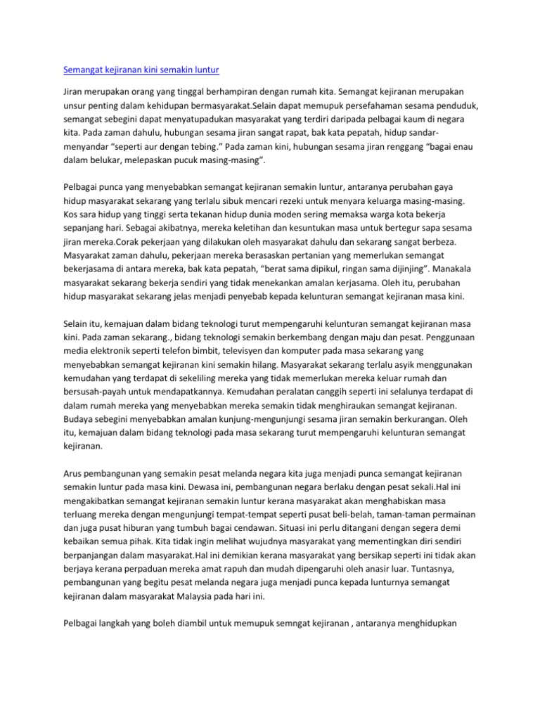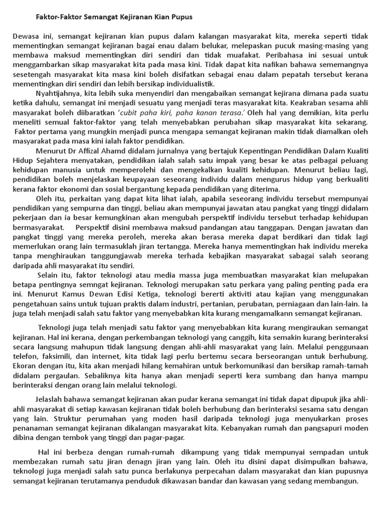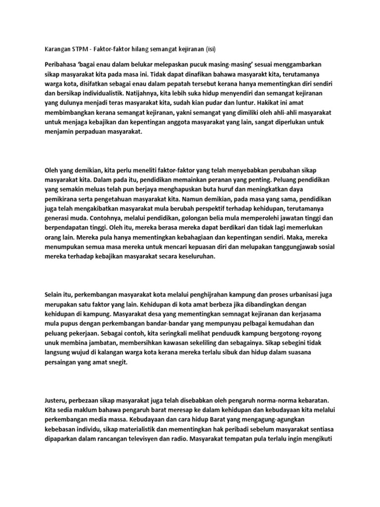 Karangan Stpm Faktor Faktor Hilang Semangat Kejiranan