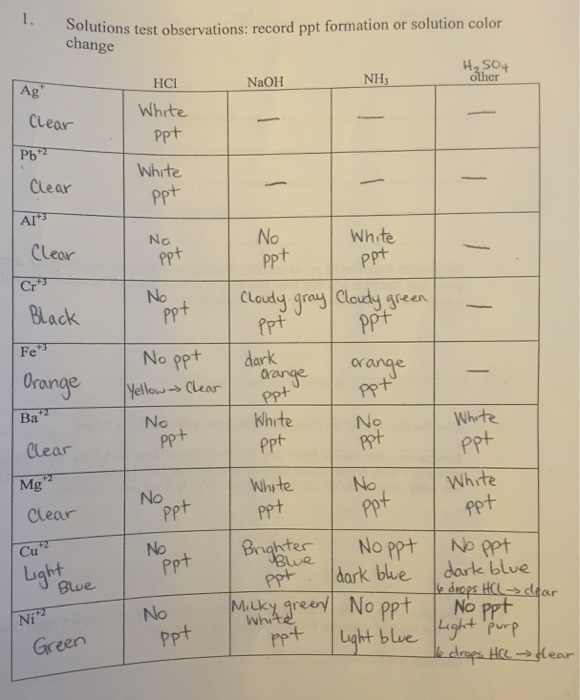 Qualitative Analysis Of Cations 1 Prepare A Data Chegg Com