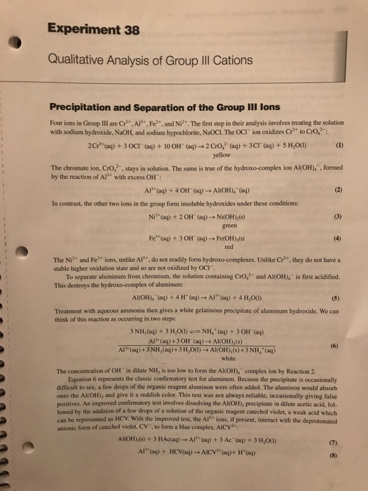 Solved Experiment 38 Qualitative Analysis Of Group Cati Chegg Com