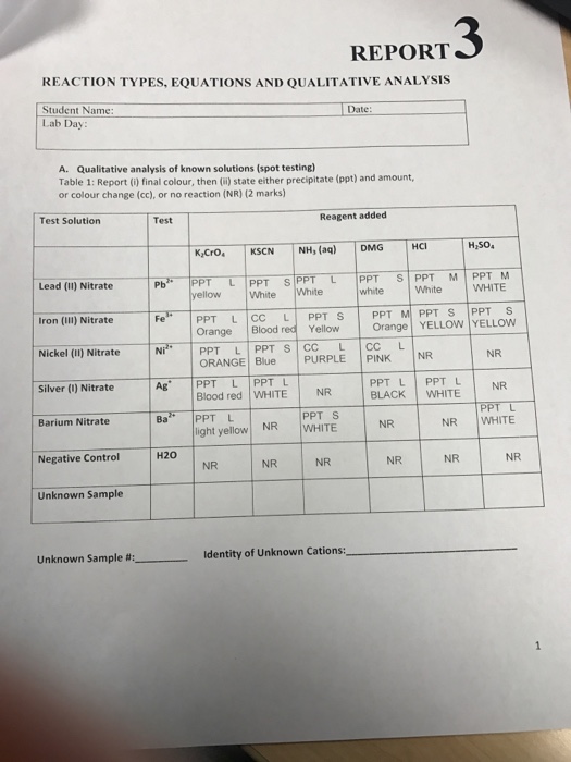 Solved Introduction To Qualitative Analysis Lab Report Sh Chegg Com