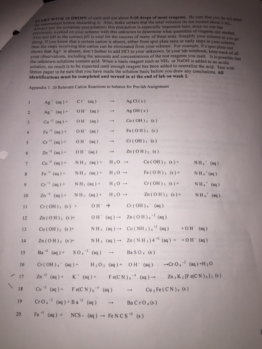 Qualitative Analysis Of Cations Pre Lab Answers Experiment 19