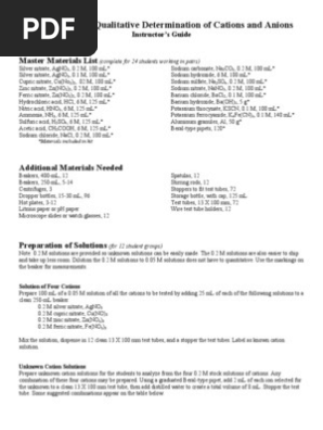 Ap Chemistry Experiment 19 Qualitative Determination Of Cations And Anions Lab Hydroxide Precipitation Chemistry