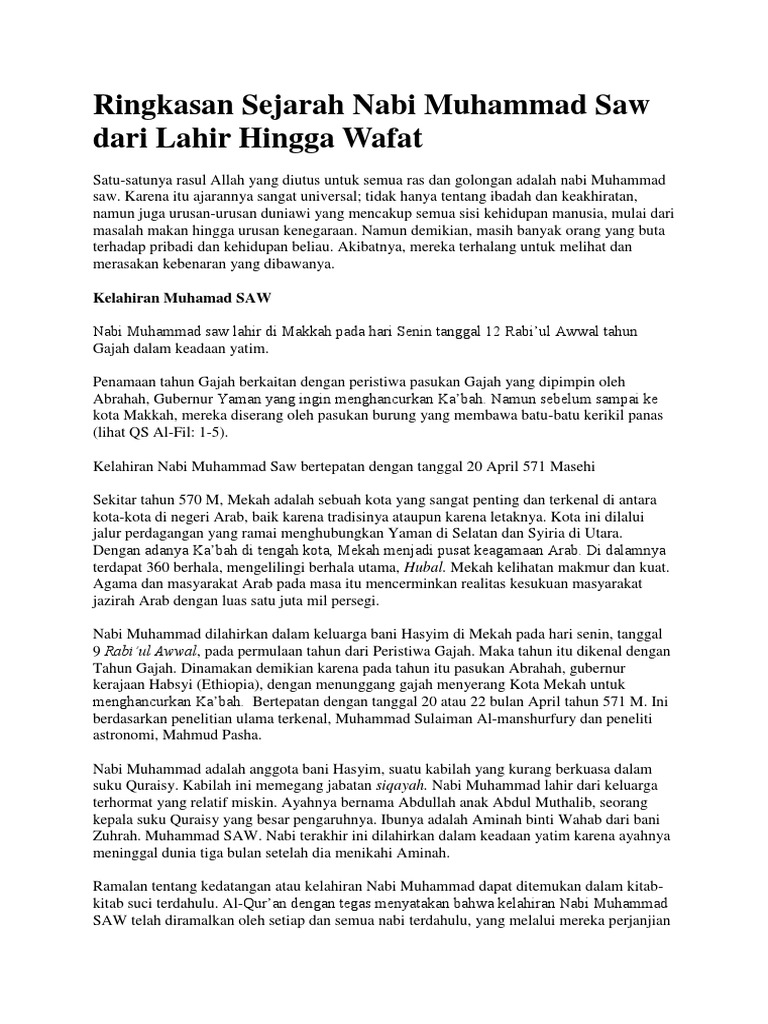 Doc Sejarah Singkat Kelahiran Nabi Muhammad Saw Zainuddin Udin Academia Edu