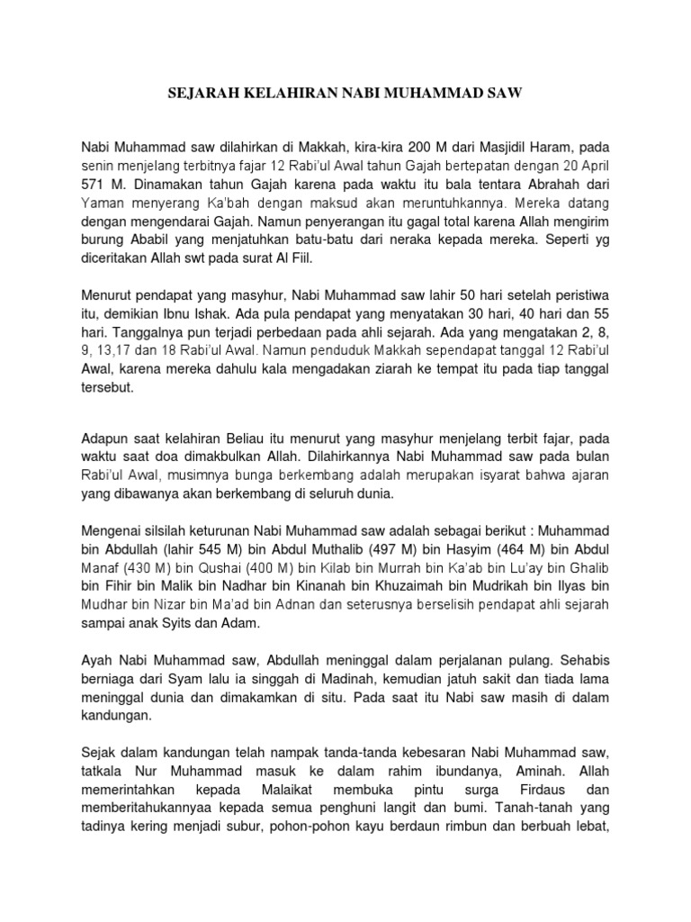 Sejarah Kelahiran Nabi Muhammad Saw Pdf