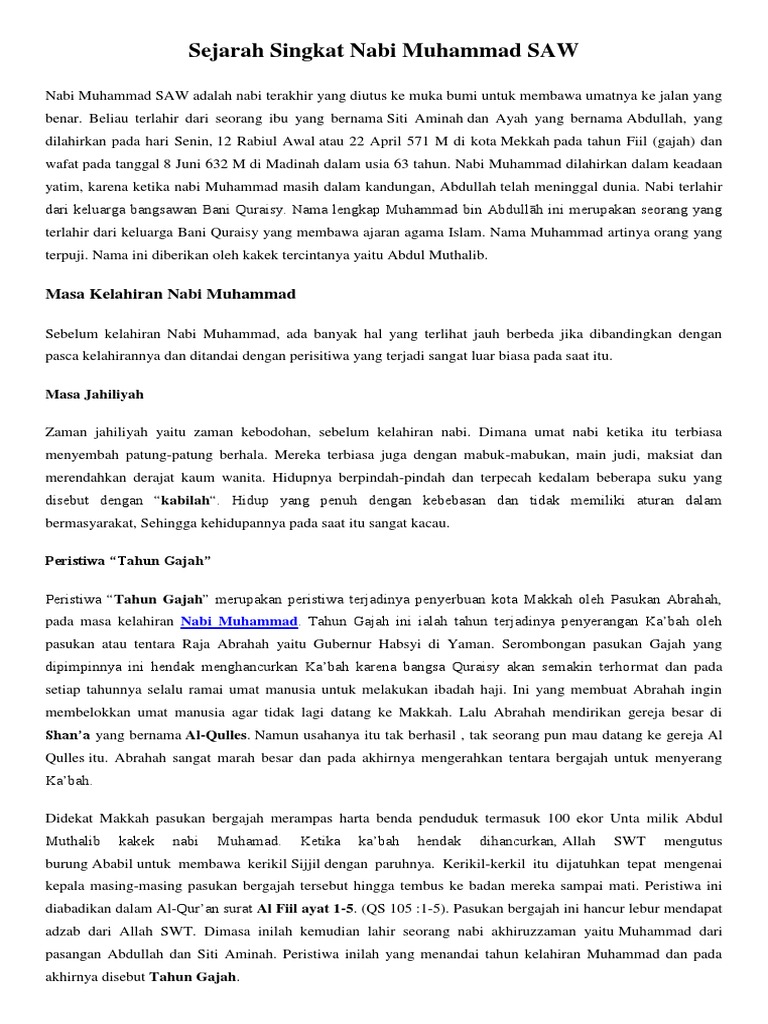Doc Sejarah Singkat Kelahiran Nabi Muhammad Saw Zainuddin Udin Academia Edu