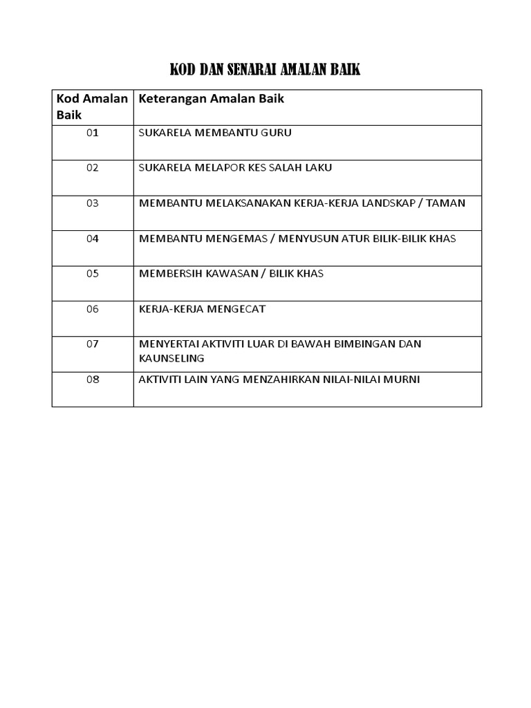 Senarai Amalan Baik Murid Di Sekolah