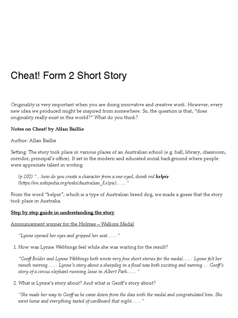 The Short Storyl That I Have Studied In Form 2 Cheat
