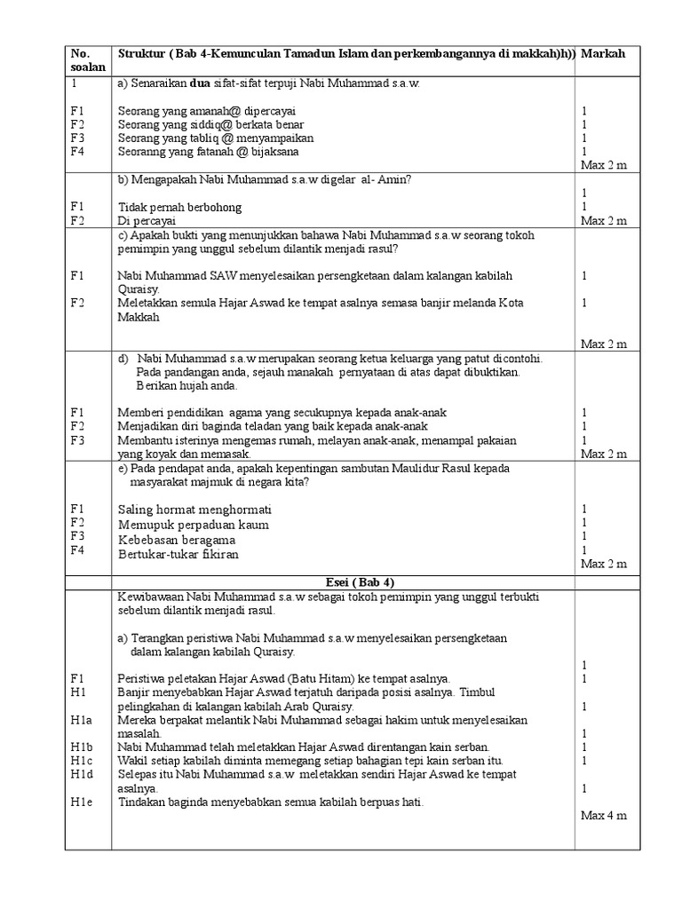 Sifat Terpuji Nabi Muhammad Sejarah Tingkatan 4
