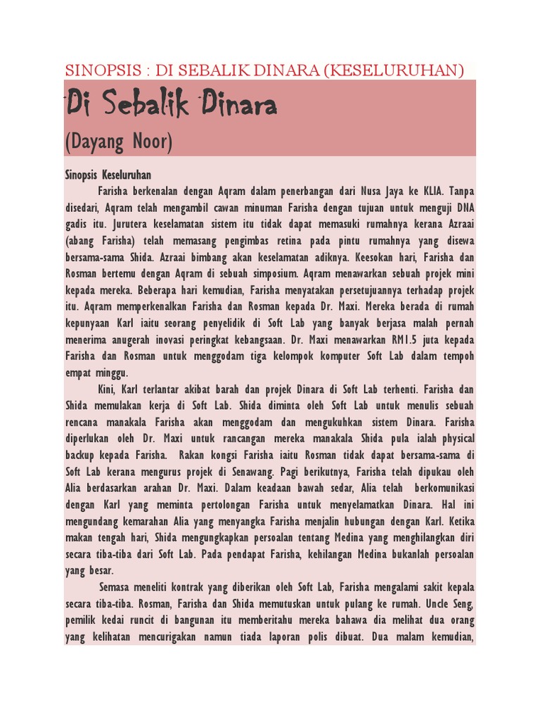 2018 Docx Sinopsis Sinopsis Novel Di Sebalik Dinara Bab 1 Farisha Berjalan Susup Sasap Untuk Melepasi Selautan Manusia Yang Memenuhi Balai Berlepas Course Hero