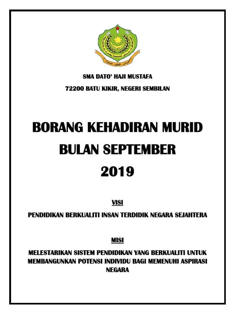 Borang Kehadiran Murid C0ver