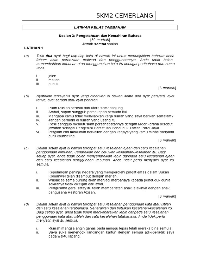 5km2 Cemerlang Soalan 3 Pengetahuan Dan Kemahiran Bahasa
