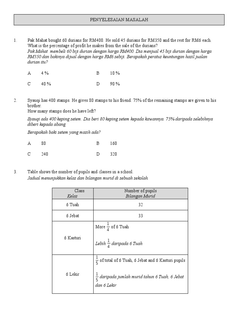 Koleksi Soalan Dan Latihan Matematik Tahun 6 Upsr Jawapan Bumi Gemilang