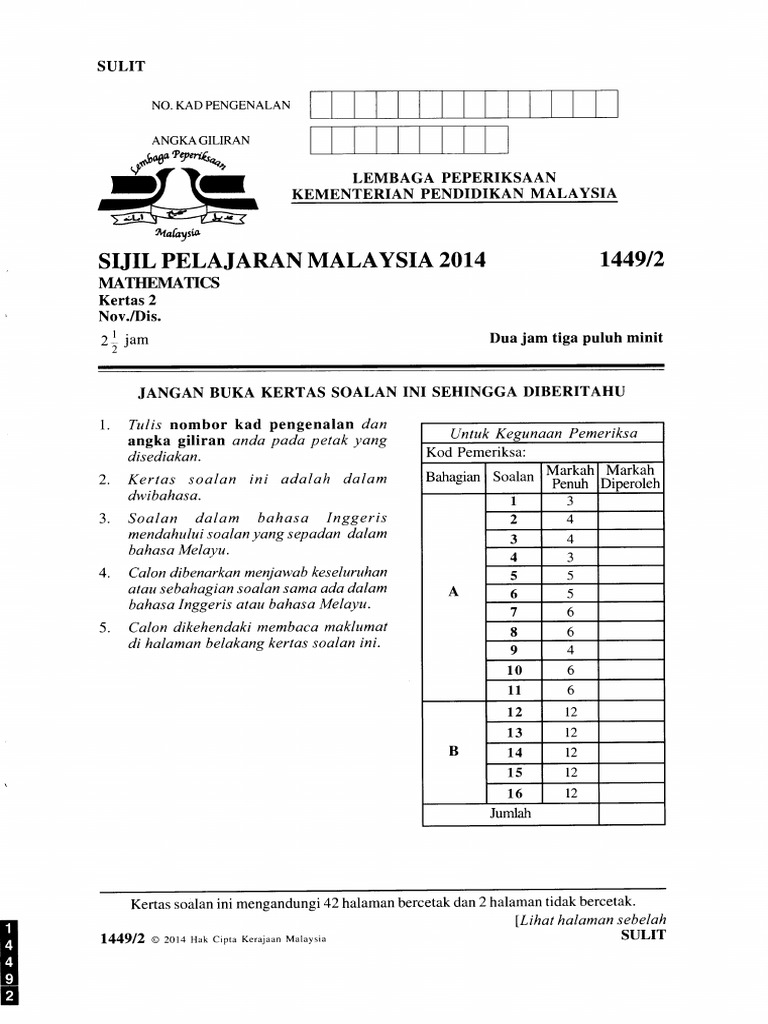 Spmsoalan Soalan Spm 2014 Matematik Kertas 2