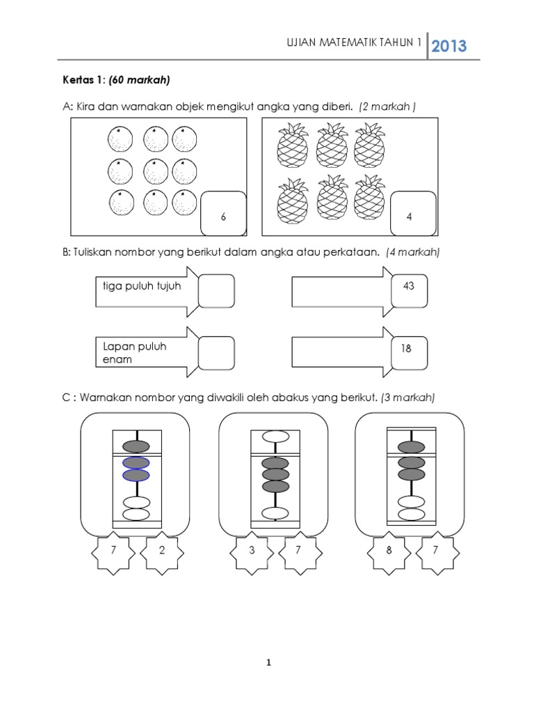 Soalan Matematik Tahun 1 Kssr Pdf Kecemasan C