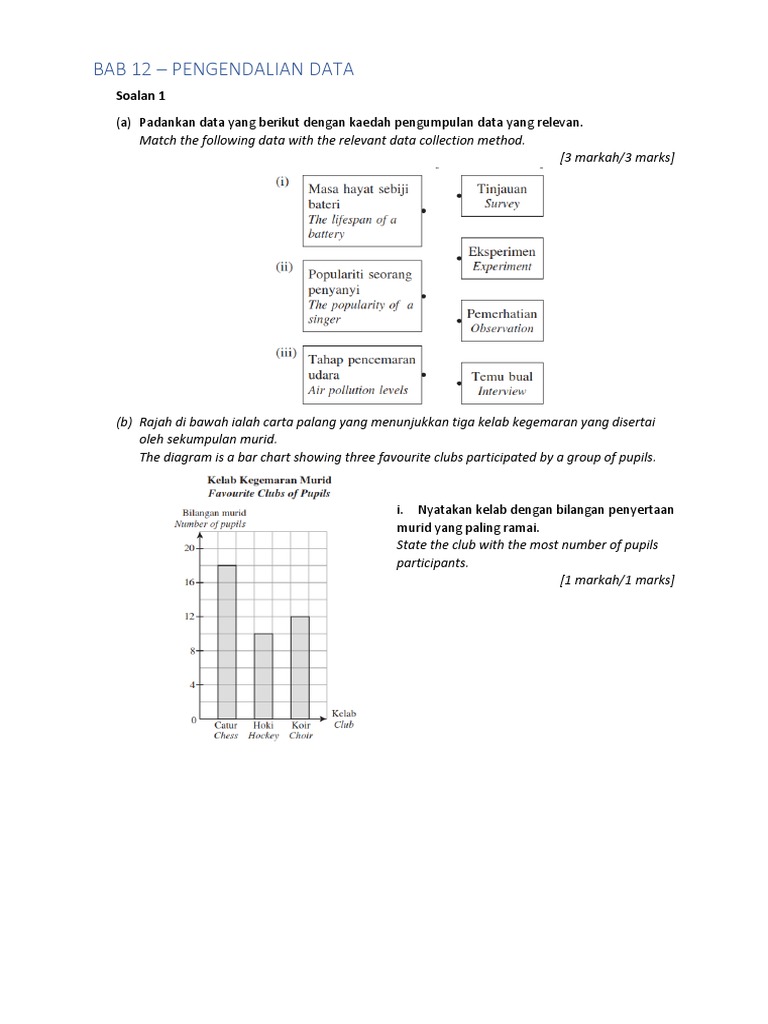 Bab 12 Pengendalian Data A Padankan Data Yang Berikut Dengan Kaedah Pengumpulan Data Yang Relevan