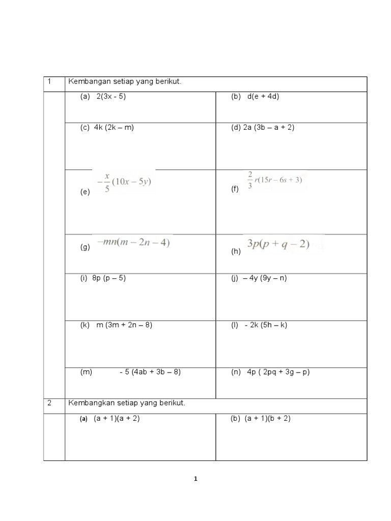 Soalan Matematik Tingkatan 2 Bab 2 Pemfaktoran Dan Pecahan Algebra