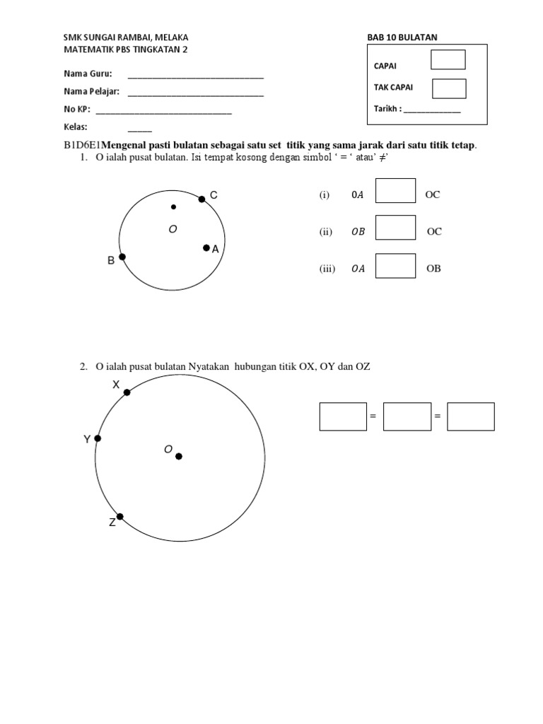Soalan Matematik Bulatan Tingkatan 2 Kssm