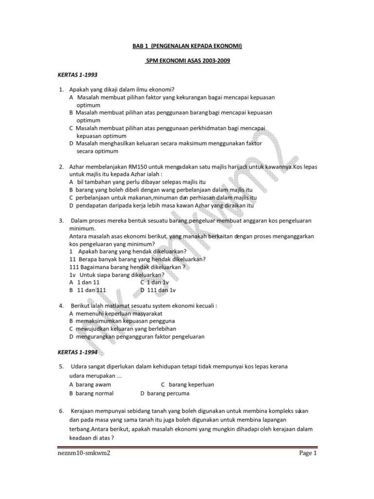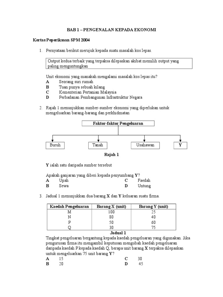 Soalan Ekonomi Tingkatan 4 Bab 1