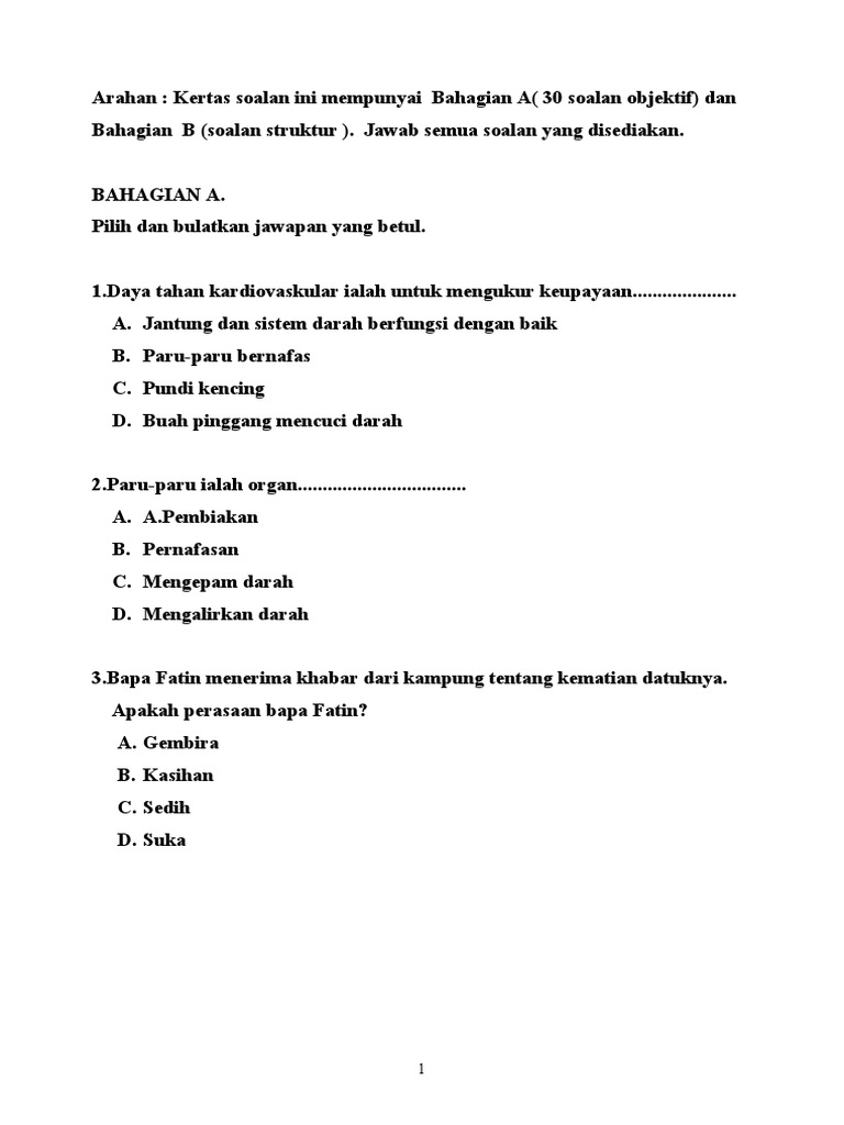 Soalan Pendidikan Jasmani Dan Kesihatan Tahun 2