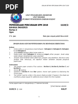 58e2 Docx 1119 1 Soalan Setara Percubaan Spm Kudat 2018 Sulit Unit Pengurusan Akademik Unit Bahasa Pejabat Pendidikan Daerah Kudat Peperiksaan Course Hero