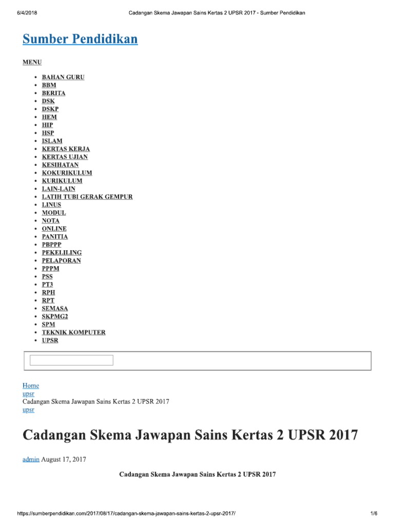 Kertas Peperiksaan Sains Kertas 2 Upsr 2017 Sumber Pendidikan