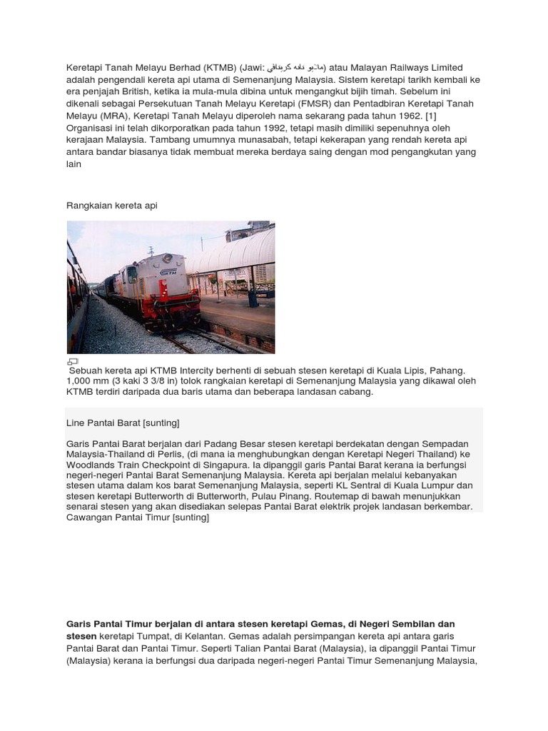 Keretapi Tanah Melayu Wikipedia