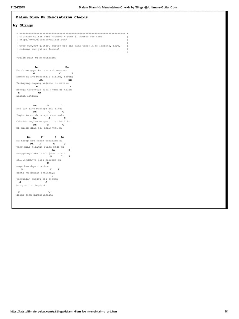 Dalam Diam Aku Mencintaimu Stings Karaoke Chords Chordify