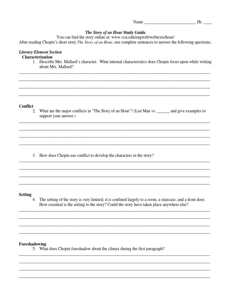 The Story Of An Hour Summary Activity