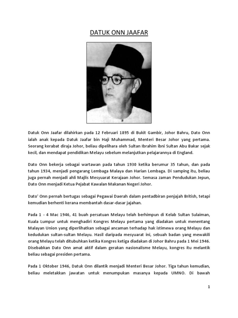 Inspirasi Varsiti Tokoh Patriotik Malaysia Dato Onn Jaafar Dilahirkan Pada Tahun 1895 Di Bukit Gambir Johor Bahru Bapanya Dato Jaafar Haji Muhammad 1838 1919 Merupakan Menteri Besar Johor Yang Pertama Dan