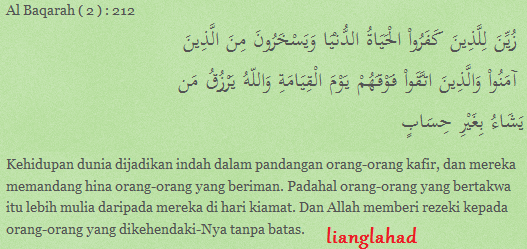 Qs 2 212 Quran Surat Al Baqarah Ayat 212 Terjemah Bahasa Indonesia Al Quran Indonesia