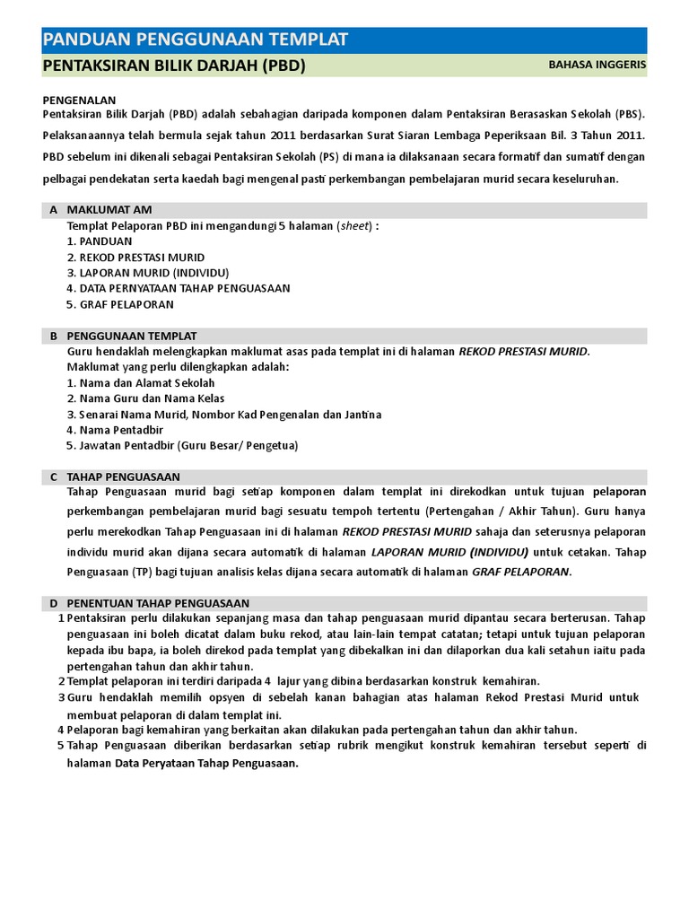 Panduan Penggunaan Templat Pelaporan Pentaksiran Bilik Darjah Pbd